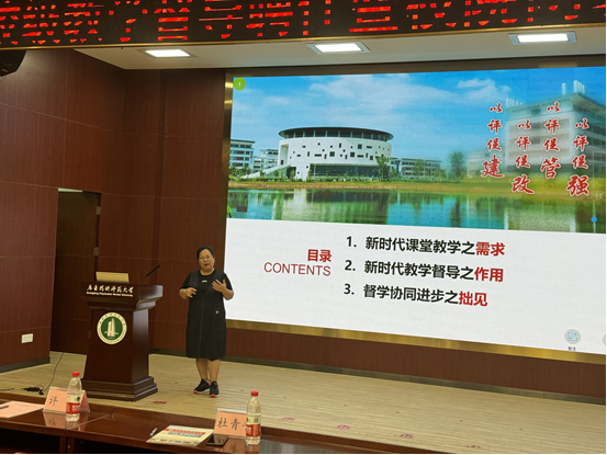 本次会议我校还特邀广东工业大学校级教学督导组组长杜青平教授作专题培训。杜教授以《锚定政策坐标,开拓教质新航道》为题,结合多年督导经验,从政策背景、课堂评价、数字化赋能、师生沟通等方面进行了深入浅出的讲解,强调督导应“以督促改、以导促建”,真正成为教学质量的“守护者”和教师成长的“引路人”。
