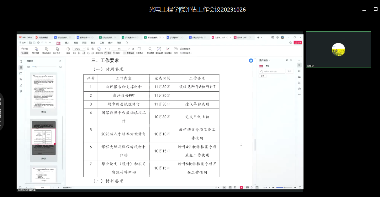 10月26日,光电工程学院召开了2023年本科教育教学审核评估工作推进线上会议。会议由学院副院长陈湛旭主持,何影记院长、各系部主任、专业负责人及学院部分教师参加了会议。