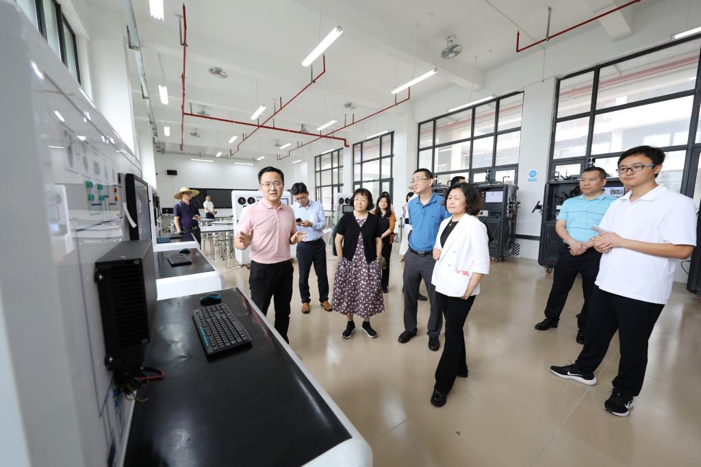 调研组一行按照拟定的考察点位、考察内容以及行走线路,走访了图书馆、学生活动中心、融媒体中心和师范技能训练中心、家车一体数字工场等地,聆听了现场工作人员的讲解,参观了学校改革发展成就展,了解了学生科技创新服务广东百千万工程成果及卓越教师培养情况和卓越工程师培养情况。
