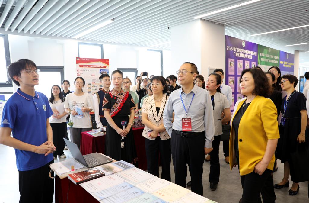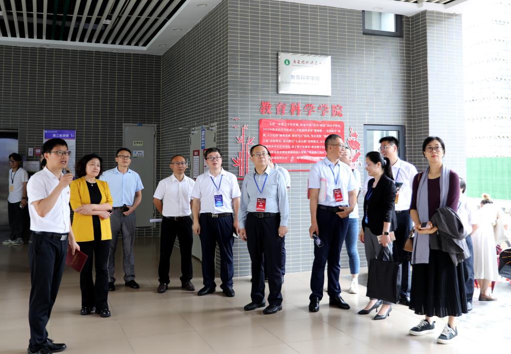 审核评估专家组一行集体考察了我校数说广师大项目、图书馆、学校办学成果展、学生科技创新成果展、服务广东百千万工程成果展、智能家电科产教融合实训中心、信息智能创新实验室、高熵能源创新实验室、智能汽车创新实验室、师范技能训练中心和融媒体中心等地,了解我校本科人才培养特色与教育教学设施条件等方面情况。
