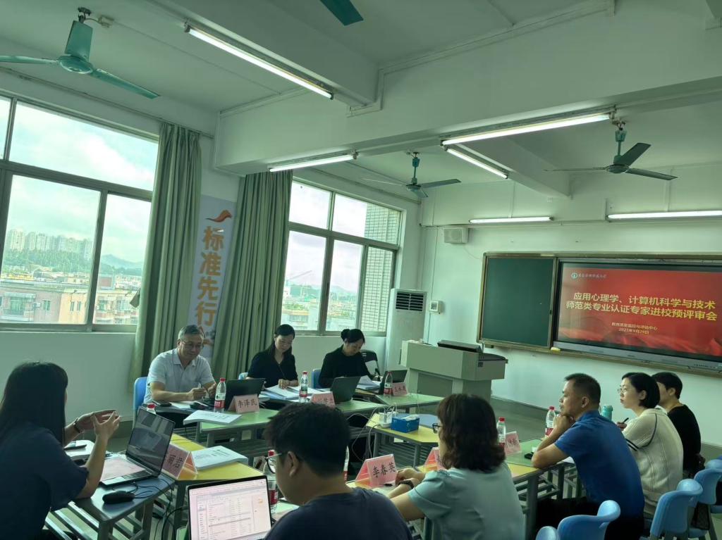 为扎实推进师范类专业认证迎评工作,提升专业建设质量与人才培养水平,9月29日上午,我校在东校区第一教学楼805会议室召开应用心理学、计算机科学与技术师范类专业认证专家进校预评审会议。会议特邀华南师范大学心理学院副院长刘学兰教授、广东第二师范学院教务处副处长李泽民教授、外国语学院副院长王永建副教授担任评审专家。教育质量监控与评估中心主任陈丽君教授主持会议。教育科学学院、计算机科学学院相关负责人、骨干教师、教务员及评估中心工作人员参加会议。